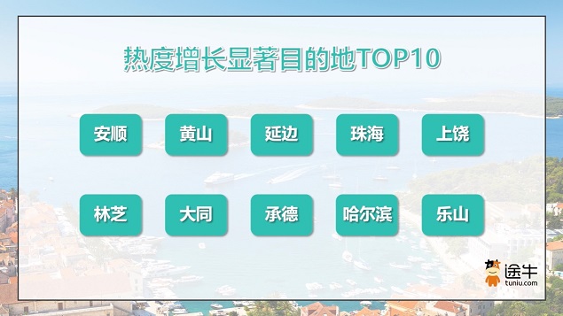 此外,随着炎炎夏日的持续,游客避暑游需求加速释放,大连、哈尔滨、青岛、桂林、安顺、贵阳、大理、丽江、呼伦贝尔、白山等避暑游目的地的出游热度将继续走高。