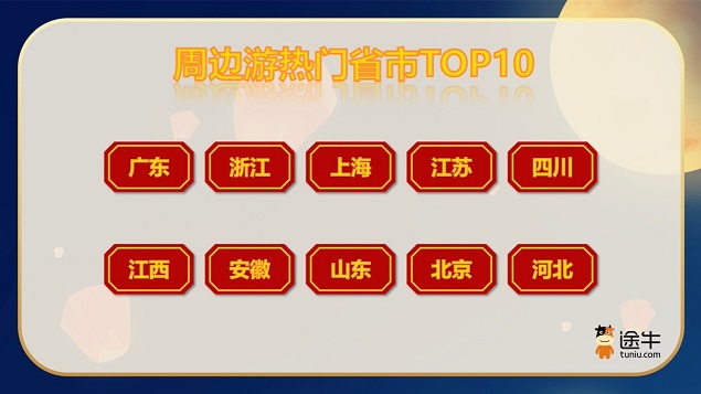 今年中秋假期介于暑期和国庆假期中间,不少用户已经在暑期体验过了“诗和远方”,或计划到了国庆假期再开启中长行程的旅行。因此,这个中秋假期呈现出周边游为主,长线游为辅的特点。近40%的用户选择在当地、远郊地区或周边城市进行短途旅行。周边游热门目的地方面,广东、浙江、上海、江苏、四川、江西、安徽、山东、北京、河北等省份1-2小时的自驾城市圈或高铁城市圈成为热门之选。