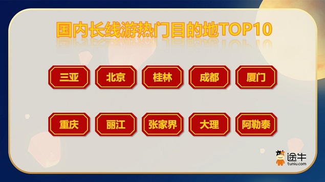 国内长线游市场延续了暑期的余温,呈现出较高的热度,出游人次占比达35%,其中,三亚、北京、桂林、成都、厦门、重庆、丽江、张家界、大理、阿勒泰等吸引了更多长线游用户的关注。