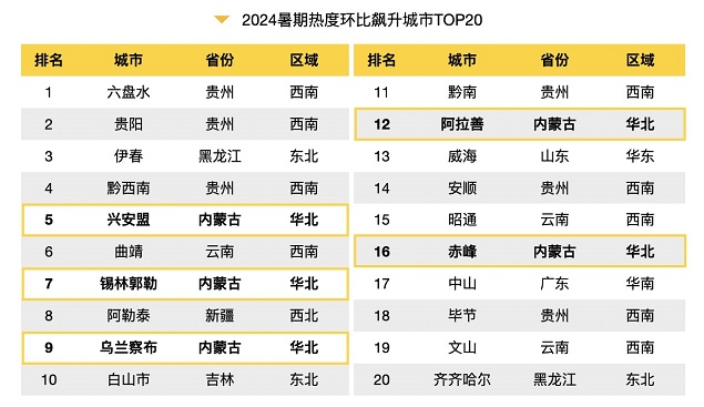 席卷全国多地的高温让森林、草原等避暑胜地成为今年夏季出游的热门之选。马蜂窝大数据显示,水草丰美且气候宜人的内蒙古自入夏以来热度不断攀升,在2024暑期热门省份榜单中跻身前五,位列华北地区之首,兴安盟、锡林郭勒、乌兰察布三地冲入暑期热度涨幅最快的城市前十。