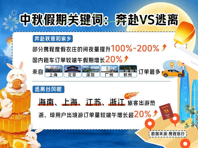 在过节方式方面,携程发现,假期的关键词还可分为“奔赴”和“逃离”。