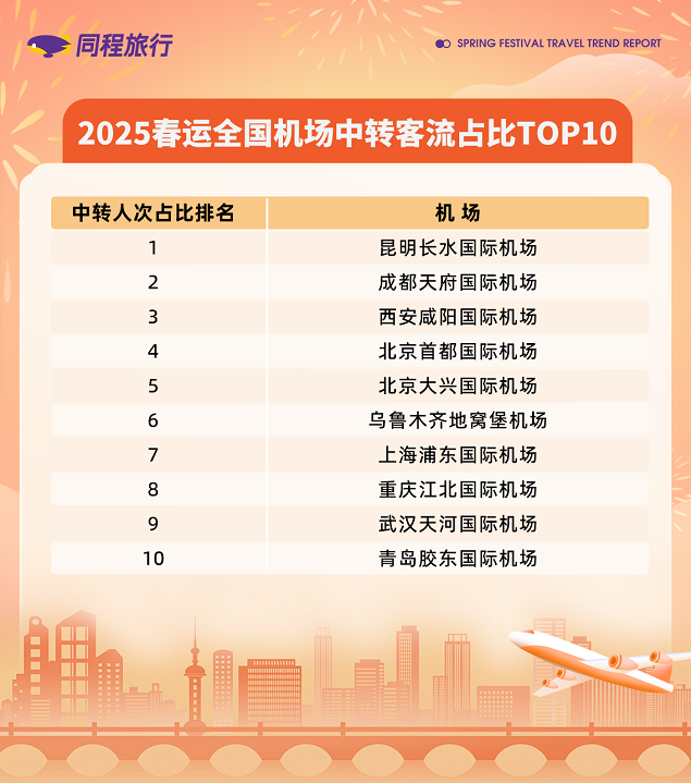 同程旅行2025春运旅行趋势报告:中转机票性价比更高,春节“曲线回家”受青睐