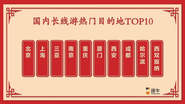 境内游主导今年春节假期旅游消费,出游人次占比达70%,其中,国内长线游和周边游出游人次占比分别为48%和22%。
