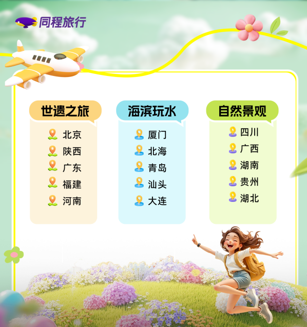 对于17岁-19岁的年轻人,在旅游的细分偏好上也各有不同——“世遗”之旅、海滨玩水、网红打卡等成为同程旅行平台的暴涨关键词。“世遗”主题旅行呈现明显集聚效应,北京凭借8处世界文化遗产稳居榜首;陕西(秦兵马俑)、广东(开平碉楼)、福建(土楼)、河南(龙门石窟)共同构成世界文化遗产探秘矩阵。随着暑期气温攀升,厦门、北海、青岛、汕头、大连等海滨城市也入选玩水胜地TOP5。四川、广西、湖南、贵州、湖北这4个省份及自治区同时兼顾了自然风光和网红城市属性,成为高中毕业生出游的优选。