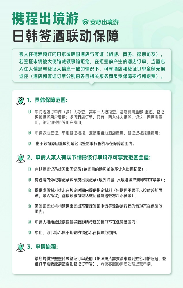 出境游签证被拒,提前订好的酒店机票损失谁来承担?携程推出日韩签酒联动保障