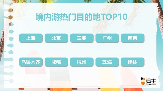 境内自由行方面,三亚、北京、南京、广州、上海、成都、重庆、杭州、珠海、厦门预订热度排名靠前。