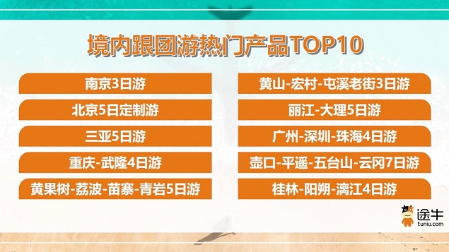 途牛打包旅游产品预订中,跟团游是途牛境内游用户的热门选择。《报告》数据显示,境内跟团游用户中,60后及以上的年长者占据了更高的比例。途牛2025年上半年境内游热门跟团游产品中,“南京3日游”“黄山-宏村-屯溪老街3日”“北京5日定制游”“丽江大理5日游”“三亚5日游”等聚焦热门目的地及经典行程的纯玩团、定制团成为游客的热门选择。