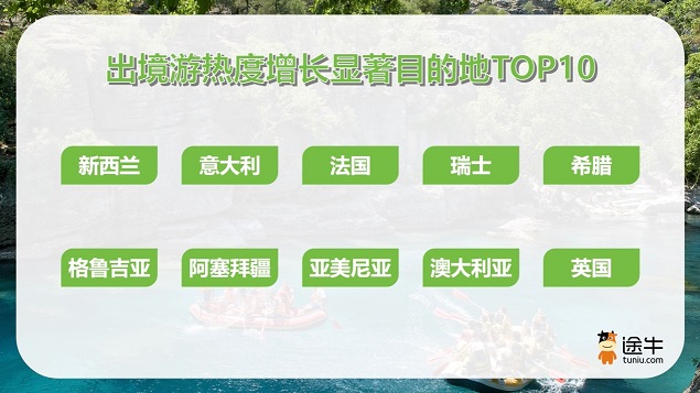 出境游方面,新西兰、意大利、法国、瑞士、希腊、格鲁吉亚、阿塞拜疆、亚美尼亚、澳大利亚、英国等长线方向的出游热度快速增长。