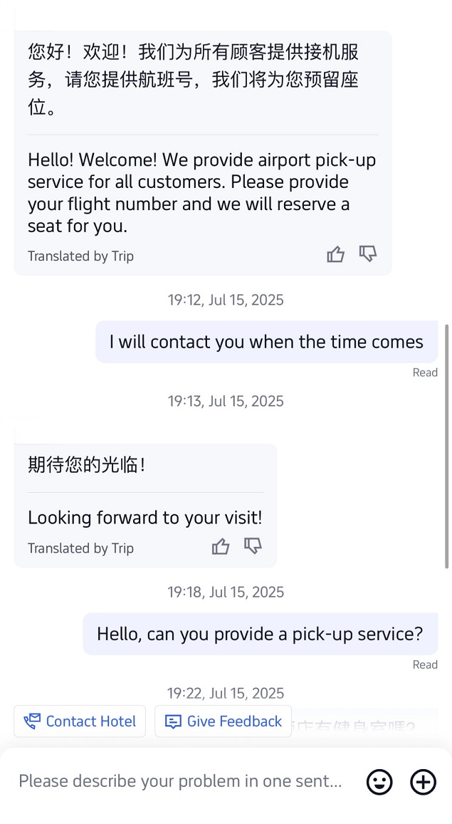 该功能可助力酒店轻松解答外籍旅客咨询(示例)