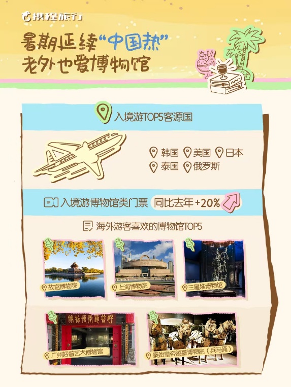国家移民管理局数据显示,今年上半年,外国人出入境数量稳步增长,达到3805.3万人次,同比上升30%;其中,免签入境外国人1364万人次,占入境外国人的71%,进入暑假,China Travel依然保持热辣滚烫。上海、深圳、广州、北京、成都继续稳居入境目的地前五;韩国、美国、日本、泰国、俄罗斯为主要客源地。老外也爱钻进中国博物馆,博物馆类门票同比去年上涨近20%,故宫博物院、广州好普艺术博物馆、秦始皇帝陵墓博物院(兵马俑)、上海博物院、三星堆博物馆等成为了他们的心头好。