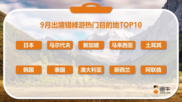 随着学子们回归校园,旅游市场迎来了错峰游最佳窗口期。途牛截至目前最新预订数据显示,境内错峰游主导9月旅游市场,出游人次占比接近80%。错峰游窗口期将一直持续到国庆假期前一周。