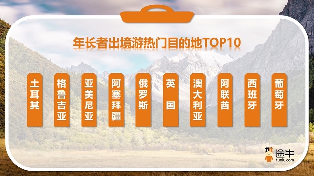 出境游方面,年长者热衷于开展更长行程、更深度体验的旅程。出境游年长者中,超六成选择了10天及以上的出游行程。其中,土耳其、格鲁吉亚、亚美尼亚、阿塞拜疆、俄罗斯、英国、澳大利亚、阿联酋、西班牙、葡萄牙等目的地的预订热度持续攀升,备受年长者青睐。