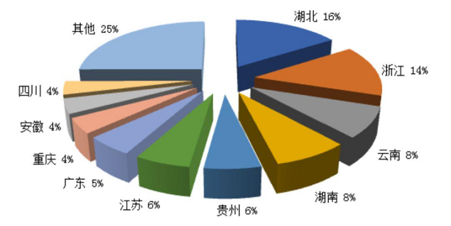 第三季度旅行社国内旅游接待人次排名前十位的城区由高到低依次为湖北、浙江、云南、湖南、贵州、江苏、广东、重庆、安徽、四川。(见图 2)