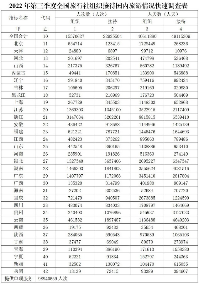 2.2022年第三季度全国旅行社组织接待国内旅游情况快速调查表