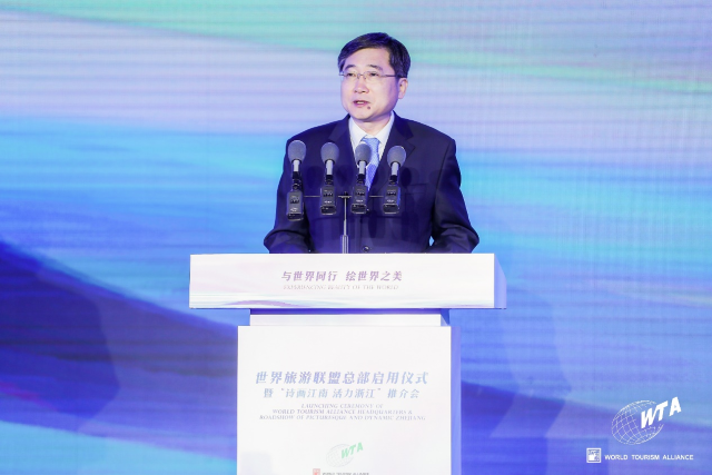浙江省委常委、杭州市委书记刘捷向世界旅游联盟总部正式启用致以热烈祝贺。他表示,作为落户杭州最高规格的国际组织,世界旅游联盟总部今天正式启动,标志着杭州与世界更加紧密的连接在一起,成为新时代新征程,杭州推进国际化旅游国际化新的里程碑。相信依托这一重要平台,杭州一定能够打响“人间天堂,醉意杭州”的城市文旅品牌,成为最具影响力的国际旅游休闲目的地。