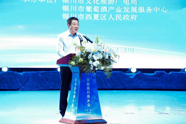 自治区副主席刘军在致辞中指出,宁夏把文旅产业作为主动融入新发展格局的重要抓手和自治区“六优”产业之首,正在全力打响黄河文化、星星故乡、酒庄休闲等六大文旅品牌,做足贺兰公园、千年灌渠、闽宁新貌等“新二十一景”成色,全力打造具有国际知名度、全国影响力的黄河生态文旅绿色岸线、贺兰山东麓生态文旅紫色廊道、六盘山生态文旅红色胜地,让宁夏的美食美酒美景走向全国、走向世界。希望与会嘉宾能够深度感知宁夏用思想伟力推动高质量发展的强烈愿望,实地触摸宁夏文旅如火如荼的生动实践,亲自感受塞上儿女与四海宾朋共谋文旅合作的赤诚之心。希望与会嘉宾能够带动更多的文旅项目落户宁夏,组织更多的四海宾朋体验宁夏,合力谱写宁夏文旅高质量发展的崭新篇章。