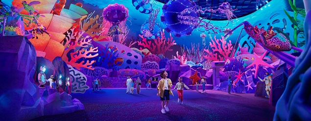 公园包括五个室内楼层,占地18.3万平方米,讲述令人着迷的“同一片海洋”的故事。园区通过打造八个沉浸式区域,带领游客体验一次将学习和游乐完美结合的发现之旅。