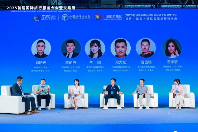 “数智文旅创新发展”对话聚焦技术创新与产业融合。中国旅行社协会数字经济专委会会长郑皓天与元界矩阵(北京)科技有限公司总裁李伯男、南京功夫豆科技股份有限公司总经理李娜、上海睿博智途智能科技有限公司总经理廖立杨、贵州趣游吧旅游服务有限公司董事长胡昌雄、北京敏尚鑫瑞科技有限公司董事长董敏等多位科技企业负责人,共同探讨了人工智能、大数据等技术在优化旅游服务流程、创新商业模式方面的应用前景。