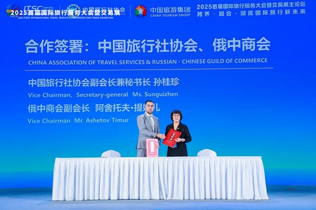 论坛期间举行了重要国际合作项目发布仪式。韩国旅行业协会会长李振锡、中国旅行社协会会长杜宪忠共同发布“中韩旅游业交流会”项目,标志着两国旅游业界将建立常态化合作机制。同时,中国旅行社协会与俄罗斯无国界旅游协会共同签署《上合组织成员国和对话伙伴国旅游产业企业和职业协会及其他从事旅游活动的组织合作协议》,中国旅行社协会、俄罗斯对外经济行业参与者联盟(俄中商会)签署合作谅解备忘录,中国国土经济学会国土交通委员会、中国旅行社协会铁道旅游分会、中国旅行社协会定制旅行分会共同签署战略合作协议,太保科技有限公司、中国康辉旅游集团有限公司签署战略合作协议。