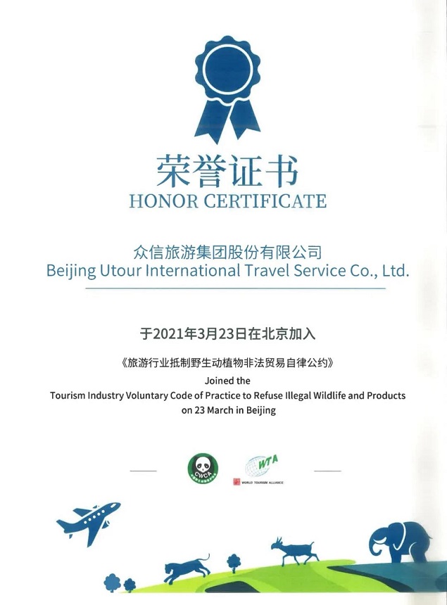众信旅游集团作为全国旅游系统先进集体、全国文明先进单位持续多年践行社会责任,做行业领军人。2021年3月,众信旅游集团作为世界旅游联盟创始会员率先签署《旅游行业抵制野生动植物非法交易自律公约》。在世界旅游联盟和中国野生动植物保护协会指导下,进一步发挥行业影响力,引导广大游客严格遵守相关国际公约和法律法规,为保护生态环境、倡导文明出游和推动旅游业可持续发展做出自己的贡献。