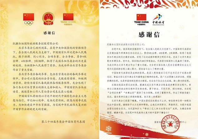 在参加本次总结表彰大会之前,凯撒体坛收到来自中国体育代表团和冬季运动管理中心的两封感谢信,信中表示,凯撒体坛在推动我国冰雪运动发展、圆满完成北京冬奥会训练备战参赛任务过程中表现出高度的政治责任感和历史使命感,以及勇于担当、尽职尽责、倾力相助,为实现“全项目参赛”“参赛出彩”,提供了有力保障,发挥了重要作用,作出了积极贡献!