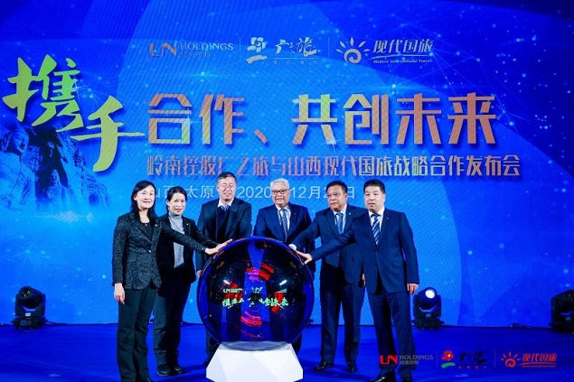 广之旅总裁赵文志与海南特区国旅总经理韩锦民代表双方进行签约,岭南商旅集团董事长、岭南控股董事长梁凌峰,岭南商旅集团副总经理李峰,岭南控股总裁陈白羽,广之旅董事长朱少东,海南特区国旅董事长韩先畴等一同见证了签约仪式。