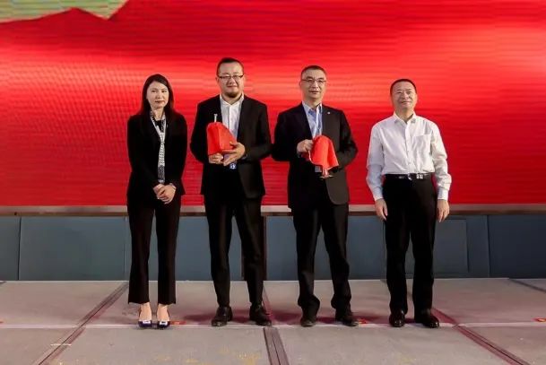 《同话沪明情·四季游三明》主题活动正式发布,三明市文旅局党组书记、局长杨永生(右1),上海市旅游行业协会秘书长许婷(左1),东方卫视都市频道《老好的生活》节目制片人陈驰(左2),上航旅游集团总经理助理顾伟(右2)为上海吃货百人团、旗袍百人团、摄影百人团、萨克斯百人团吹响集结号。