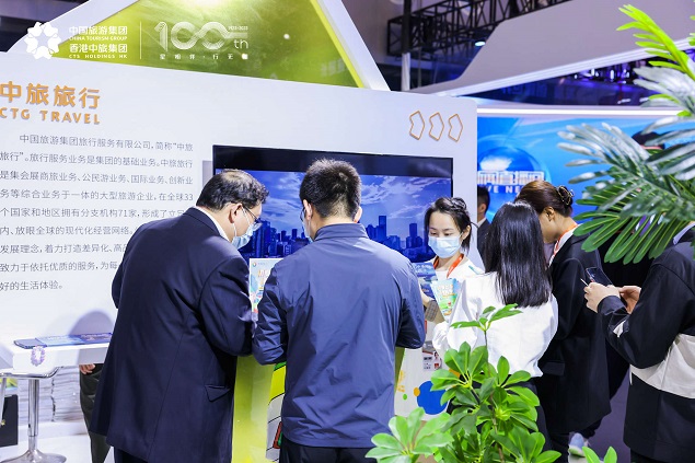 本次中国旅游集团参展主题为“百年中旅 时光巡礼”,结合集团百年华诞,传递百年旅游央企的品牌力量及旅游助力品质新生活的整体基调。展会现场,颇具中国古典意味的全新百年标识,展现着山水意象,传达着悠长百年时光的旅途寓意。