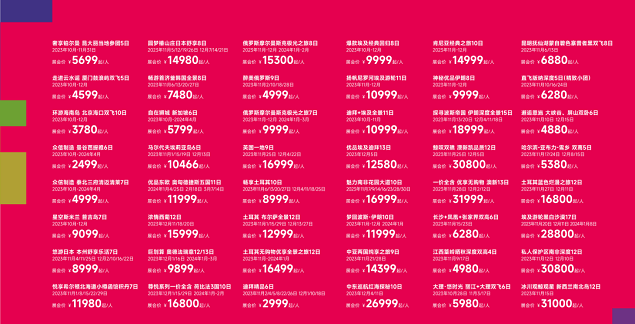 众信旅游为本次展会筹备了近千余款旅游线路,覆盖国内热门目的地,如新疆、云南、贵州、湖南、湖北;出境游如迪拜、埃及、土耳其、新加坡、欧洲等在内全球主要旅游目的地国家和地区。灵活的出游时间,立减优惠、现场抽奖等精彩活动相信将为十一后的北京旅游市场注入持续的动力。此外,众信旅游集团也在引导旅游消费、倡导错峰出游等方面不断深耕,通过一系列主题产品引导游客在旅游市场理性、科学的消费理念。