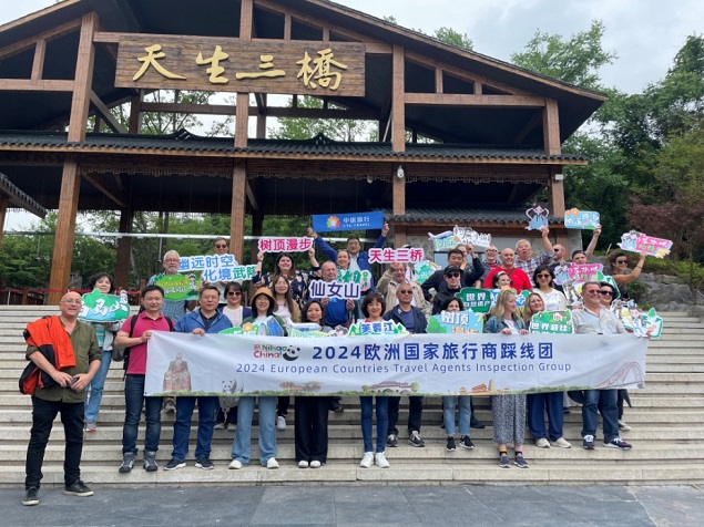 文化和旅游部国际交流与合作局于2024年上半年、下半年分别组织欧洲旅行商来华考察旅游线路产品。5月26日至6月8日,来自法国、西班牙的旅行商考察团一行40人赴重庆、陕西和四川三地踩线。5月27日,法国、西班牙旅行商考察团一行40人到达重庆,实地考察了“世界文化遗产”大足石刻、国家5A级旅游景区酉阳桃花源、龚滩古镇、龙水湖等景点。山水相依、湖岛密布,客人体验了画舫、快艇等游乐设施,欣赏天生三桥神奇的地貌景观,品尝重庆特色美食,在烟火气中感受中国山水之城的独特魅力。中旅旅行导游表示,很多旅行商并不是第一次来到中国,重庆这座城市带给他们的新鲜感很强,景区的资源品质、配套设施和服务质量都很高。“客人们乘坐两江游轮时对重庆的夜景震撼不已,夜间灯光秀、实景演出等项目,也为入境游客提供了更加多元化的夜游选择。”