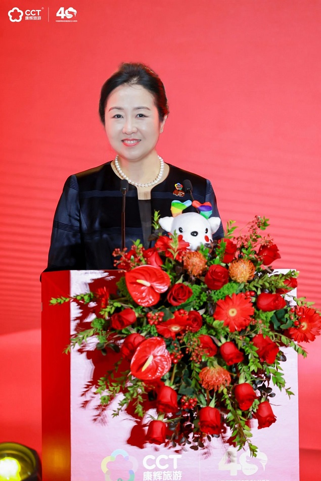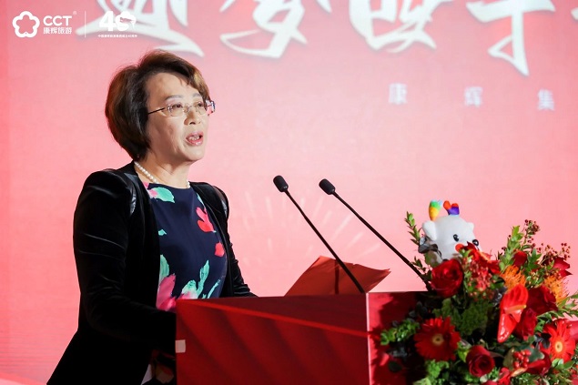 孙桂珍代表中国旅行社协会,向康辉集团表示热烈的祝贺,她表示:康辉集团见证了旅游业从起步到繁荣的全过程,也亲身经历了旅游企业从蹒跚学步到健步如飞的成长历程,取得了一系列令人瞩目的成就。希望康辉集团紧跟时代步伐,不断创新发展,提升供给水平和服务质量,推动旅游旅行服务业高质量发展,与中国旅行社协会携手并进,共同书写旅游事业更加辉煌的明天!