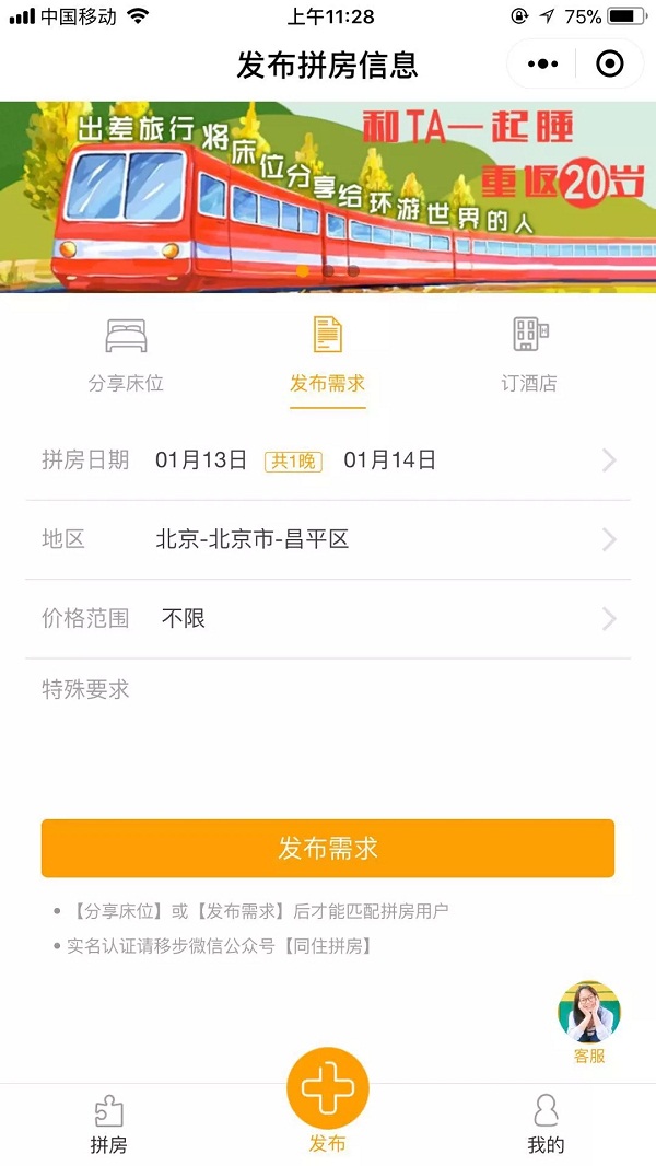发布需求半小时左右,该系统提醒已有合适的用户推荐过来。不少男性用户在个人说明处直言“约吗”“第二次使用,我请宵夜”“我,懂,不纠缠”“一起分摊一下房费吧”“第二次拼房了,有经验,安全”“我们还很年轻,说不定最后你还是会和我在一起”“女士,大床房”“出差,最好是女生,一个无聊”“异性,拒绝同性”,更有用户称“抖s喜欢m,可攻可受”,也有用户留下微信号,称“成功后商量一下在哪里”。男性用户多在23到36岁之间,上传图片多为工作照和旅行照。