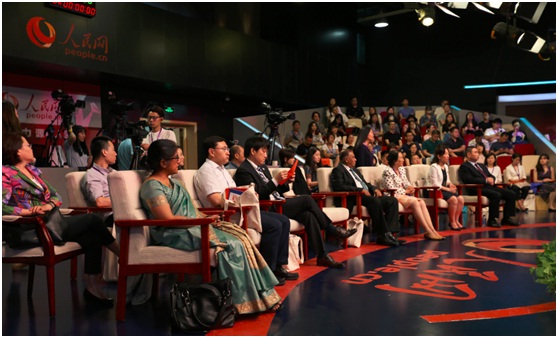 左起:斯里兰卡大使卡鲁纳塞纳•科迪图瓦库、中国妇女报社原总编辑卢小飞、人民网副总裁宋丽云