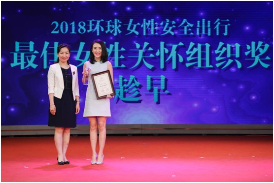 会议中,“趁早”品牌荣获最佳女性关怀组织奖,人民网副总裁宋丽云女士为“趁早”创始人王潇颁奖。