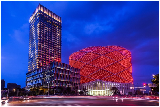 大型主题乐园则彰显广东本土文化,拥有30台游乐设备。世界首创、万达定制单轨双车同步发射双龙过山车,引领全球最先进水平;而水乐园,以中国名船“南海一号”的航海史实作为主题灵感,讲述了南洋商船重走海上丝绸之路,寻访“南海一号”的冒险故事,不受天气及季节变化影响,可供游客全天候进行游玩;还有“粤秀”,其创作灵感源于广州文化,该项目同汉秀一样,由世界顶级艺术大师弗兰克. 徳贡策划导演,利用高科技设备与特效的变幻,营造时空交错的梦幻世界。 秀场立面造型立意源于“舞红绸”概念,整体建筑彷如迎风舞动的红色丝绸,由充满动感、张力的外幕墙设计营造出独特而鲜明的地标效应,彰显广州万达城秀场的独特魅力。