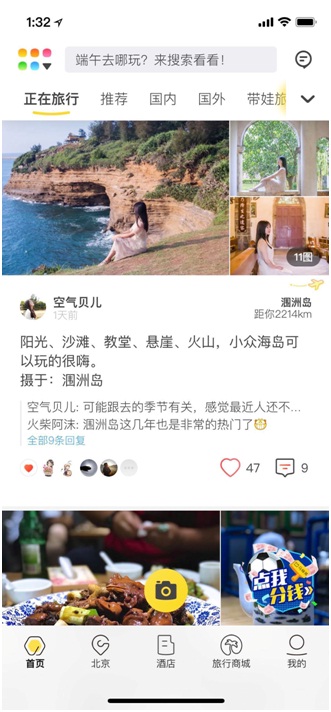 升级后的马蜂窝旅游APP首页信息流