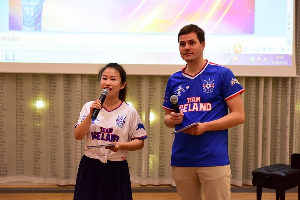 当晚嘉宾朋友们在使馆内一起观看冰岛对战尼日利亚的直播比赛,特别设定的比分竞猜环节使当晚的比赛变得更加激烈和有趣。比分竞猜获奖名单将在冰航假期微信公众号以及冰岛驻华大使馆官方微博公布。