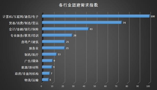 报告显示,2018年上半年,企业定制需求单量同比增长达200%,团建定制占整个企业定制的15%,团建人均消费比去年增长15%。互联网行业公司的团建比例最高,上海企业在全国排名第一。