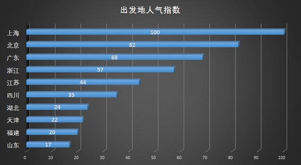 根据携程定制旅行平台数据显示,截至2018年上半年,企业团建前十出发地为上海、北京、广东、浙江、江苏、四川、湖北、天津、福建、山东。其中上海是最大客源地,企业定制会选在易到达的江浙周边城市。这一点在上半年目的地的数据中也得到了体现。
