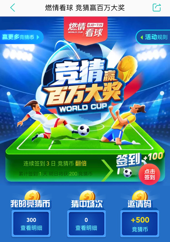 本次“燃情看球·竞猜赢百万大奖”活动将持续至7月16日,是美团为球迷用户精心打造的竞猜活动,所有球迷朋友可以凭借自己在足球领域的知识与经验,参与竞猜活动并瓜分百万大奖。用户可以打开美团App,点击“我的”按钮,进入“燃情看球”活动专场,可以通过多种途径获得竞猜币,包括每日签到、美团任意下单、搜索每日关键词、分享或邀请好友参与活动等,可以获得50-500竞猜币不等。