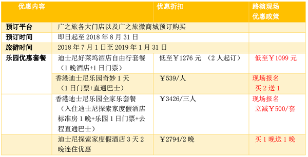 广之旅针对夏季亦推出多项优惠产品,在 7 月 6 日-8 日,于广州乐峰广场举办 “广之旅诚邀:遇见迪士尼巨星,奇妙一夏,香港迪士尼乐园嘉年华”活动,进行推广宣传。广州广之旅国际旅行社股份有限公司副总裁赵文志表示:“港珠澳大桥及广深港高铁(香港段)开通后,从大湾区到香港变得非常便捷,势必成为民众出游的时尚之选。广之旅感谢香港迪士尼乐园到访广州,把乐园的奇妙欢乐体验带给广州旅客,并希望借是次活动,加强推广广之旅多元化的香港迪士尼旅游产品,为广东居民输送更多的一站式旅游新体验。”