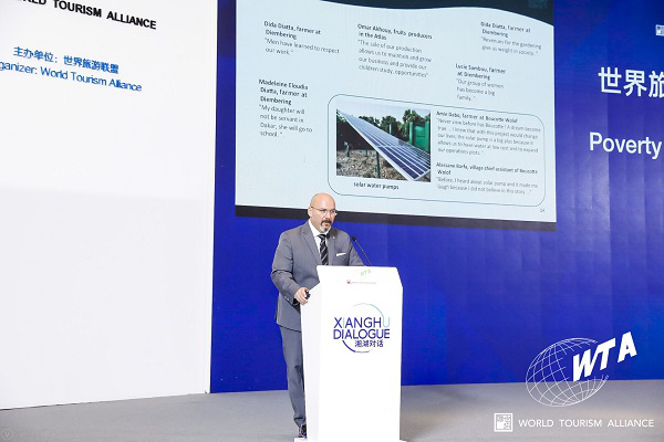 会上,世界旅游联盟主席段强先生首先发表了演讲,他表示,本次会议主旨为减贫与发展、增长与发展、创新与发展。旅游业在减贫事业中的地位正从边缘走向中心,希望通过此次对话深入探讨旅游促进减贫的时代诉求,让旅游为减贫更好服务。世界旅游联盟从去年成立以来,顺利完成了初创阶段,取得了优异的成绩。段强先生最后说到,真诚希望社会各界人士、组织等继续关注和帮助WTA在旅游业界的茁壮成长。俗话说,上有天堂,下有苏杭,杭州为WTA发展做出重要贡献,为企业和城市搭建平台,也正推动着全球旅游业可持续发展。