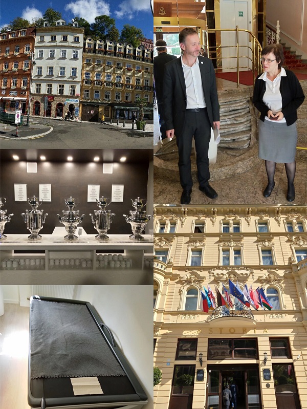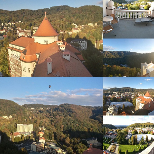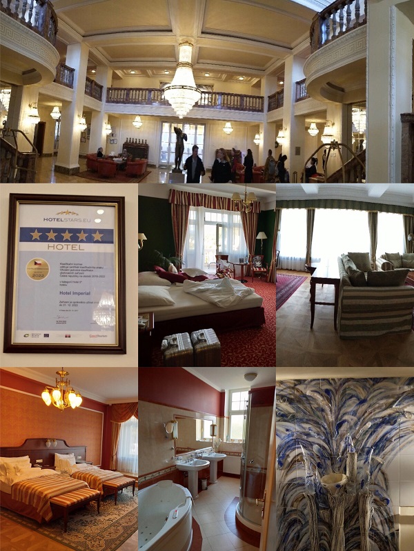 今天的check-in是这几天来最高端的一次,因为这家酒店是卡罗维发利一家著名的五星级酒店,整个酒店的装饰以及房间都相较于之前的有了很大的提升,小编的房间还有一个大阳台,从这里可以俯瞰整座城市。酒店的负责人带领小编一行参观了最高级别的套房(一夜500欧,土豪可以考虑一下),但是由于时间安排问题,今天只参观了温泉池,但并没有泡温泉。所以,小编工作完要和小伙伴们狼人杀去了古德奈特!