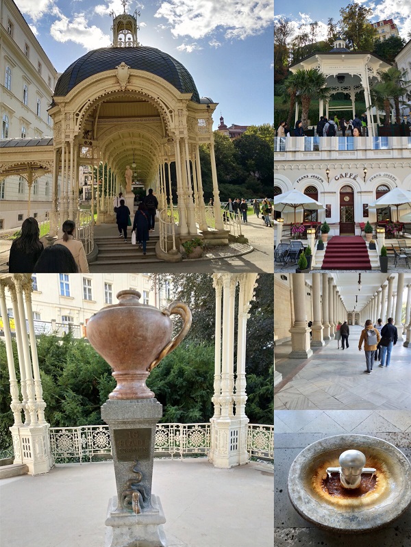 实话讲,卡罗维发利是这几天以来小编最爱的一座城市,城市不大,但街边的每一座建筑都有自己的特点,连两家紧挨着的宾馆都完全不同。沿着街道步行,不知不觉就会沉醉在这座城市的曼妙身姿中。小编中午吃饭的酒店Astoria对面便是卡罗维发利著名的温泉长廊,左侧入口处是曾经的捷克斯洛伐克第一任首相的雕塑(沙子做的,真正的沙雕),里面还有类似于街边水龙头的装置,但是这里的水是有温度、可以直接饮用的温泉水,因为这里的温泉资源十分丰富。街道周围还有华丽的亭子和咖啡馆等,这里建筑的颜色搭配简约但是有一种高级的美。好了,不能透露太多了,大家有机会一定要来卡罗维发利,小编墙裂推荐!!