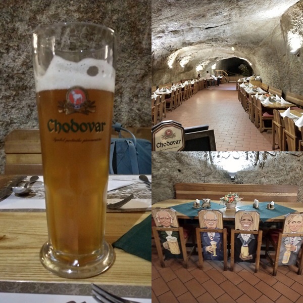 虽然在Chodova只待了不到3个小时,但是今天的午餐是非常有特色的,因为它是在一个山洞里,这个山洞已经有近900年的历史。餐厅中午11点才开门,里面的桌椅都是木质,小编的桌子旁边有一个台子,大概是表演需要用到的。