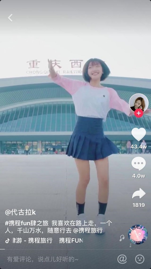 在活动期间,抖音和携程邀请@代古拉k@小小莎老师@罗西@纪涵中等四位头部意见领袖分别前往十一期间热门的高铁出游城市重庆、三亚、香港、武汉等网红城市实地体验并作为种子用户发起#携程FUN肆之旅#挑战赛,以运动炫技、小众体验、实用指南、走心故事等优质内容为主线,涵盖当下抖音目标用户的四大标签,引爆了UGC用户的参与,在社交平台引发关注。