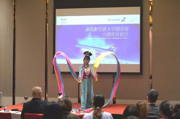如今的冰岛,早已不再仅仅是游客前往欧洲和北美地区的中转地,而是大家心驰神往的纯净国度。冰岛航空因此也承载着来自全球游客的冰岛探秘之梦。会中,来自冰岛驻华大使馆领事Jon Einar先生为我们分享了中国游客前往冰岛的最新签证资讯,相信今后前往冰岛会更加便捷。活动中,不仅介绍了关于冰岛航空和冰岛旅游的最新资讯和政策,还为大家呈现了一场国粹盛宴。