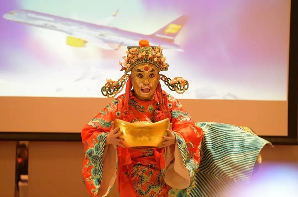 作为本次活动的特邀嘉宾,合翼航旅集团董事长 – 田香莲老师和国家京剧院青年花脸演员– 谭帅老师更是亲自登台为本次活动助兴,一曲京剧名段《赤桑镇》,将本次活动推向了高潮。