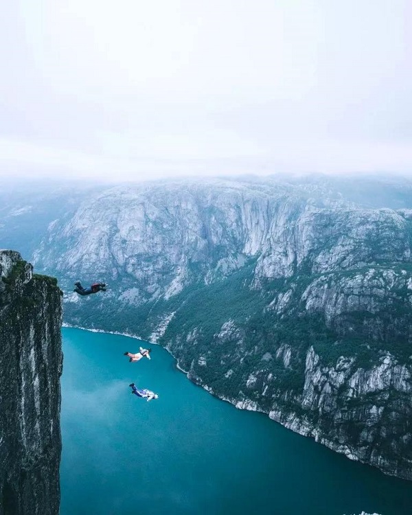 在布道台上纵身一跃,投向碧绿峡湾深处,耳边是飒飒风声,这种脚踩青天头向大地的失重感并不是每个人都敢于体会。这是真正勇敢者的游戏。