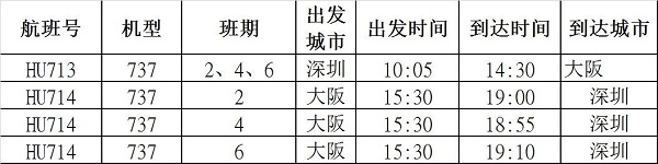 海南航空深圳=大阪航线时刻表(以下时刻均为当地时间)